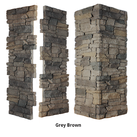Grey Brown Faux Ridge Stone Pillar Panels are designed to be installed quickly and easily to create a stone finish on any pillar or post, whether interior or exterior. The Pillar Panels have staggered edges making them interlock around any pillar quickly.