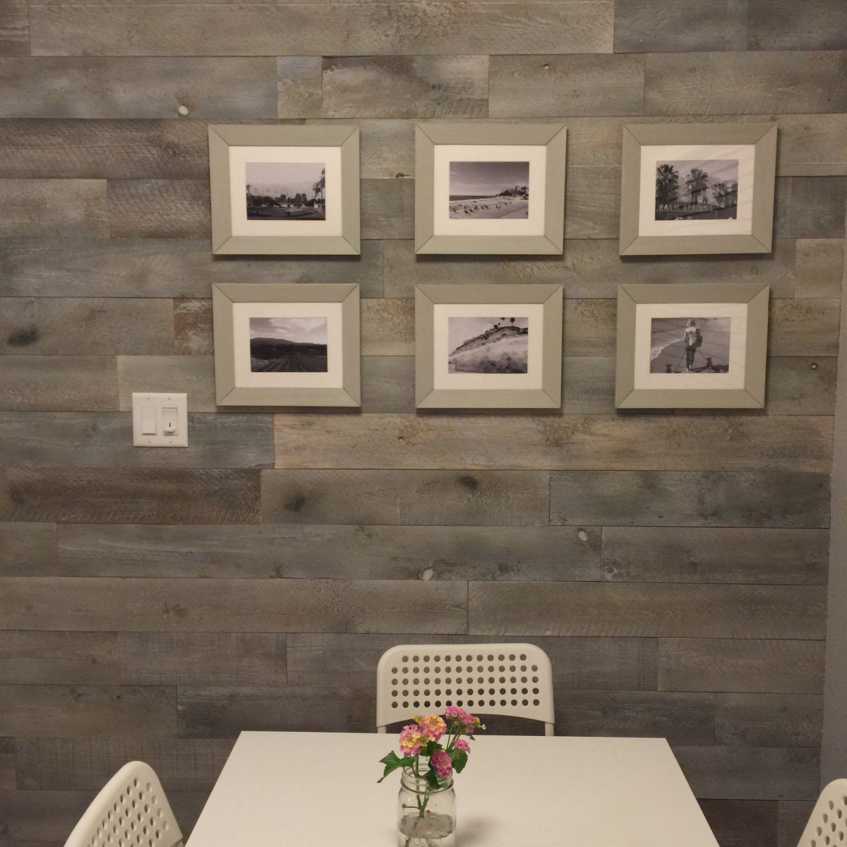 *Note: This colour is temporarily out of stock. These DIY wood wall panels are weathered with saw marks, knot holes, and bring cool grey hues to any space. Use these decorative wood panels for a ceiling application, wainscotting, or an easy to install wood wall.