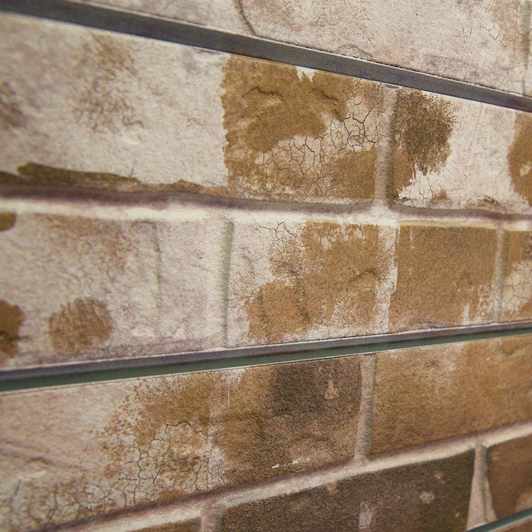 Made of MDF, these panels feature the look of old paint on bricks & are made to look like there are tiny cracks in the paint. Get the look of old, distressed brick while getting the functionality of slatwall. 3D Brick Old Paint Slatwall panels in the color taupe offer the look of light brown bricks with distressed, white paint on top.