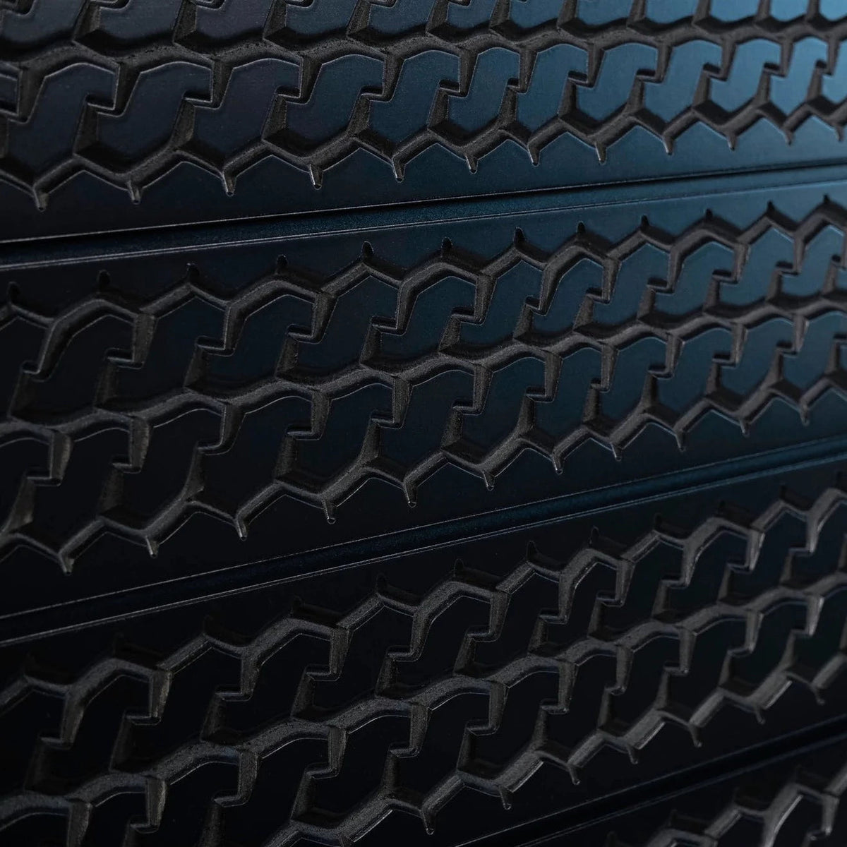 These 3D Slatwall panels are textured and printed to look like real tire tread. Panels are 2' x 8' so they can be cut to stagger seams, which allows for a more seamless install. Panels come with painted-to-match strips which cover the aluminum slat tracks.