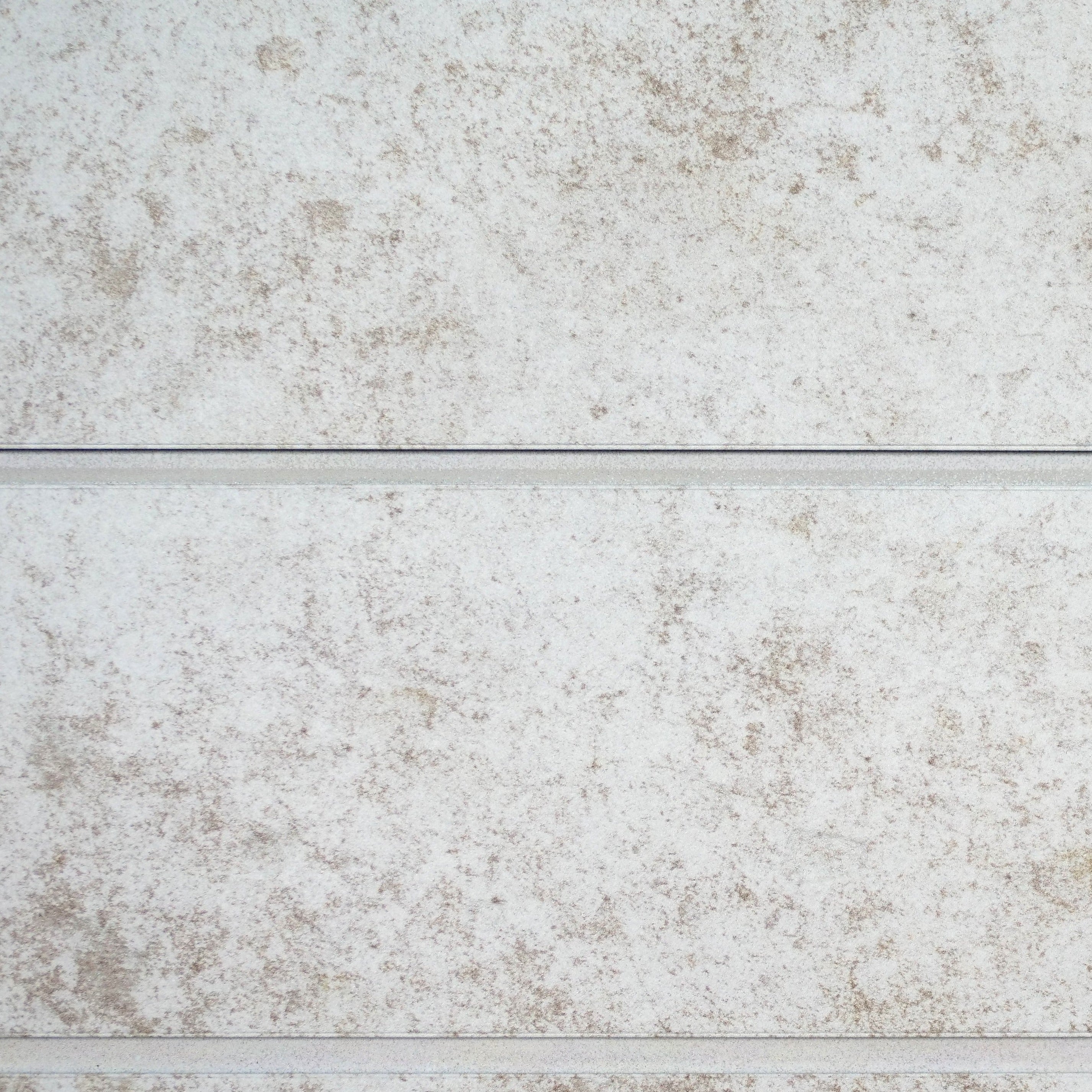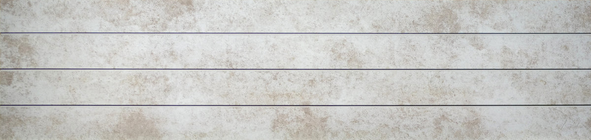 These 3D Slatwall panels are textured and printed to look like real bleached cement. Panels are 2' x 8' so they can be cut to stagger seams, which allows for a more seamless install. Panels come with painted-to-match strips which cover the aluminum slat tracks.